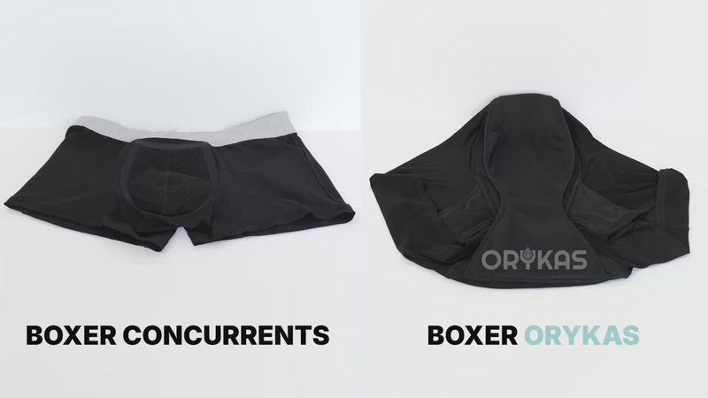 Les boxers ORYKAS offrent la même protection contre les fuites, sans les inconvénients. Pas de produits chimiques. Pas de sensation de plastique. Juste une fibre de bambou ultra-douce qui a l’apparence et le confort d’un véritable sous-vêtement.